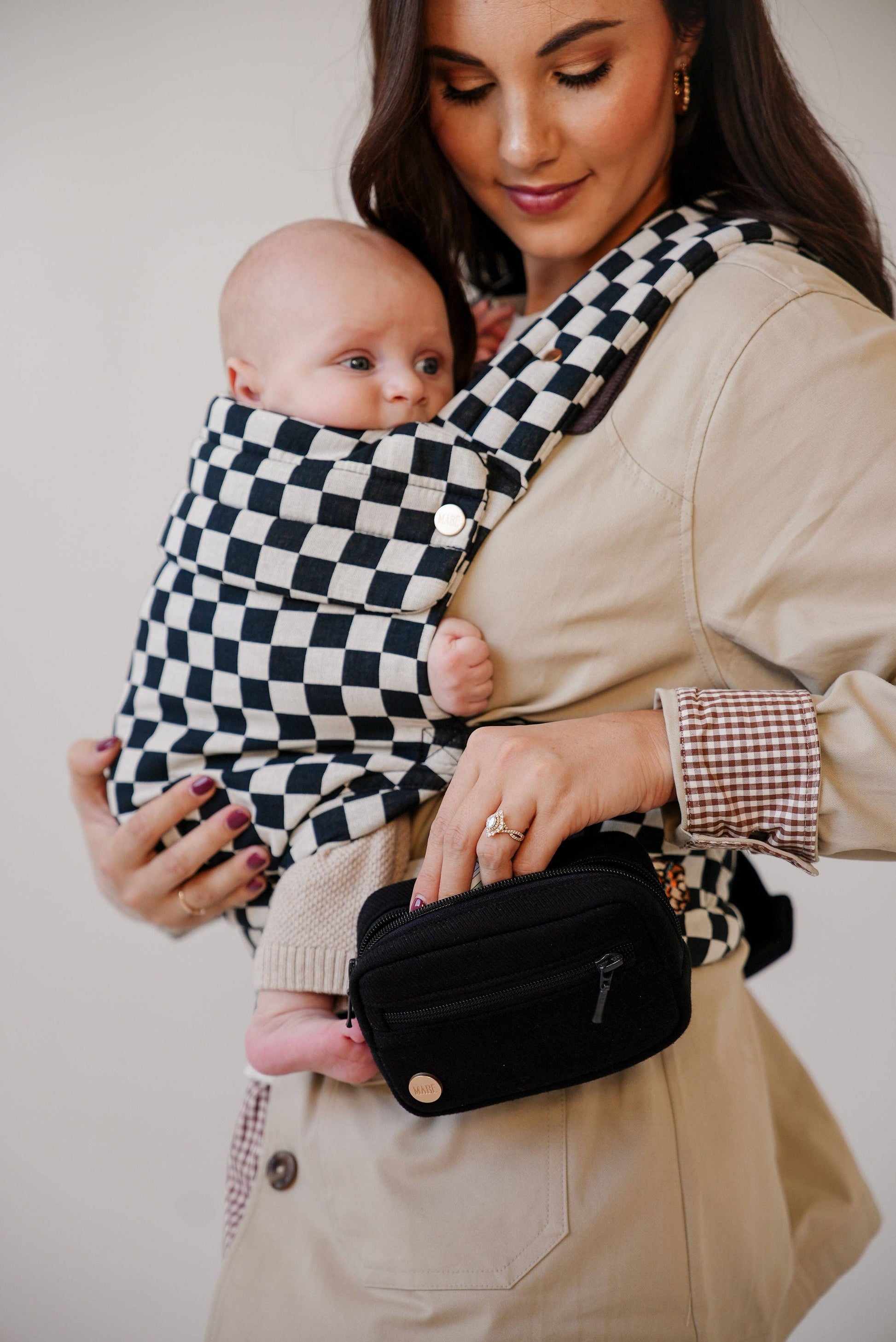 Meet your new babywearing bestie! A sleek, hands-free add-on that attaches right to your monarch buckle or sling carrier, and allows you to keep the essentials within reach and your baby close, without having to bring the whole diaper bag! With two adjustable attachment options, it fits seamlessly on either the waistband of the Monarch Buckle Carrier, or shoulder strap of the toddler sling. Perfect for just the essentials: keys, card, phone, diaper, mini wipes, binky, etc!